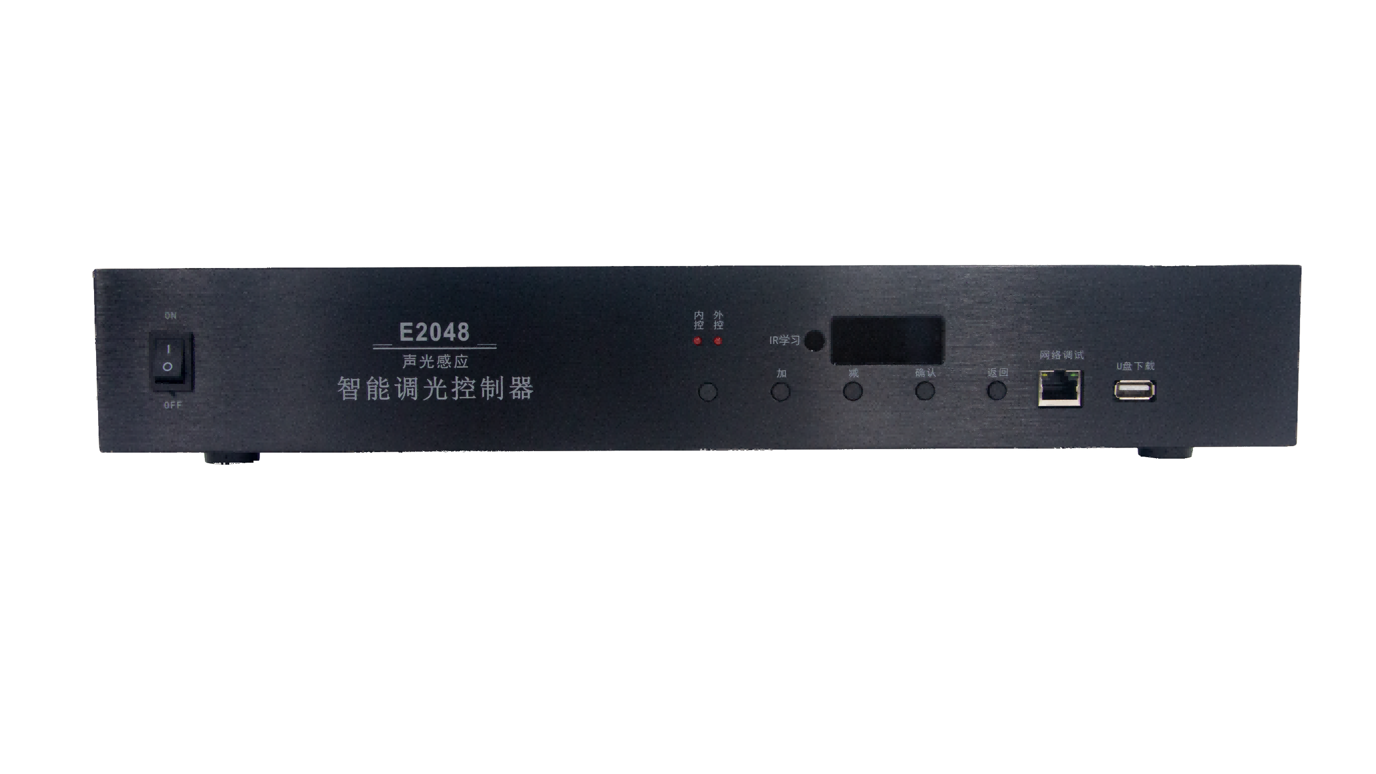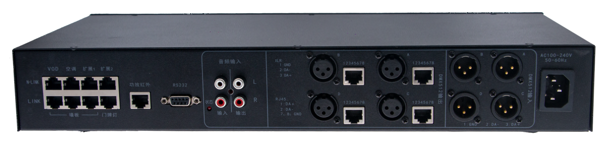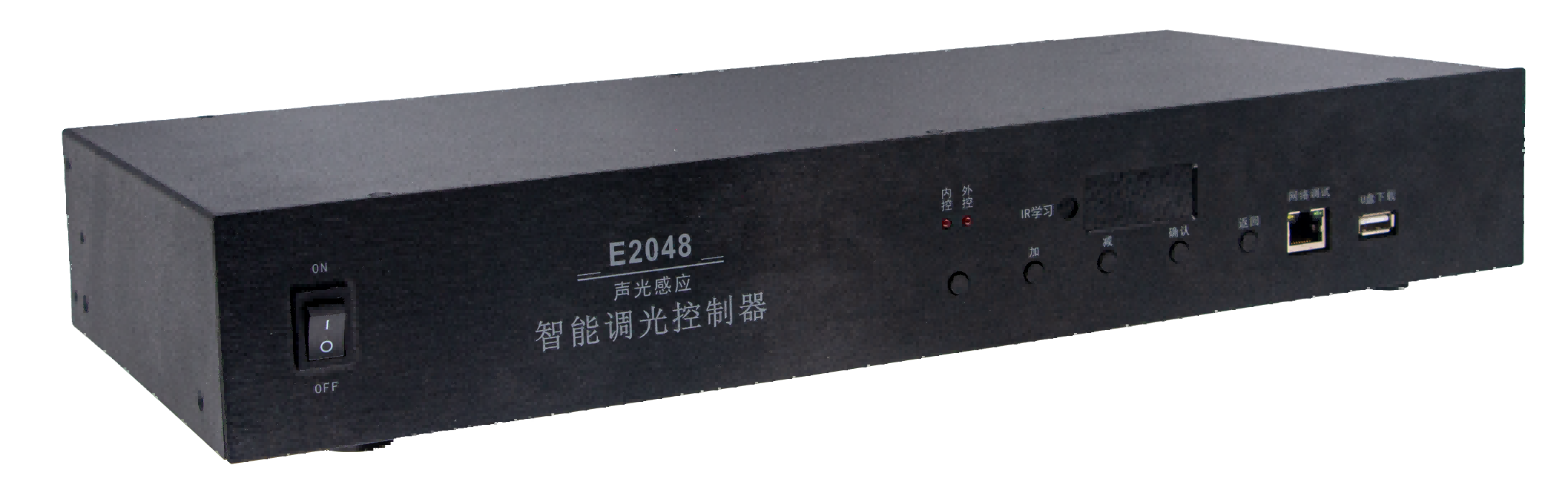 E2048是一款新型声光感应联网智能控制器具有4个DMX512信号输出口,集合了中控、音频检测、DMX512控制、U盘下载、网络有线调试、功放红外控制、墙板及门牌灯控制,实现了包房智控的高度集成化,主要应用在多功能厅、宴会厅、小酒吧、餐吧等灯具较多的场所。